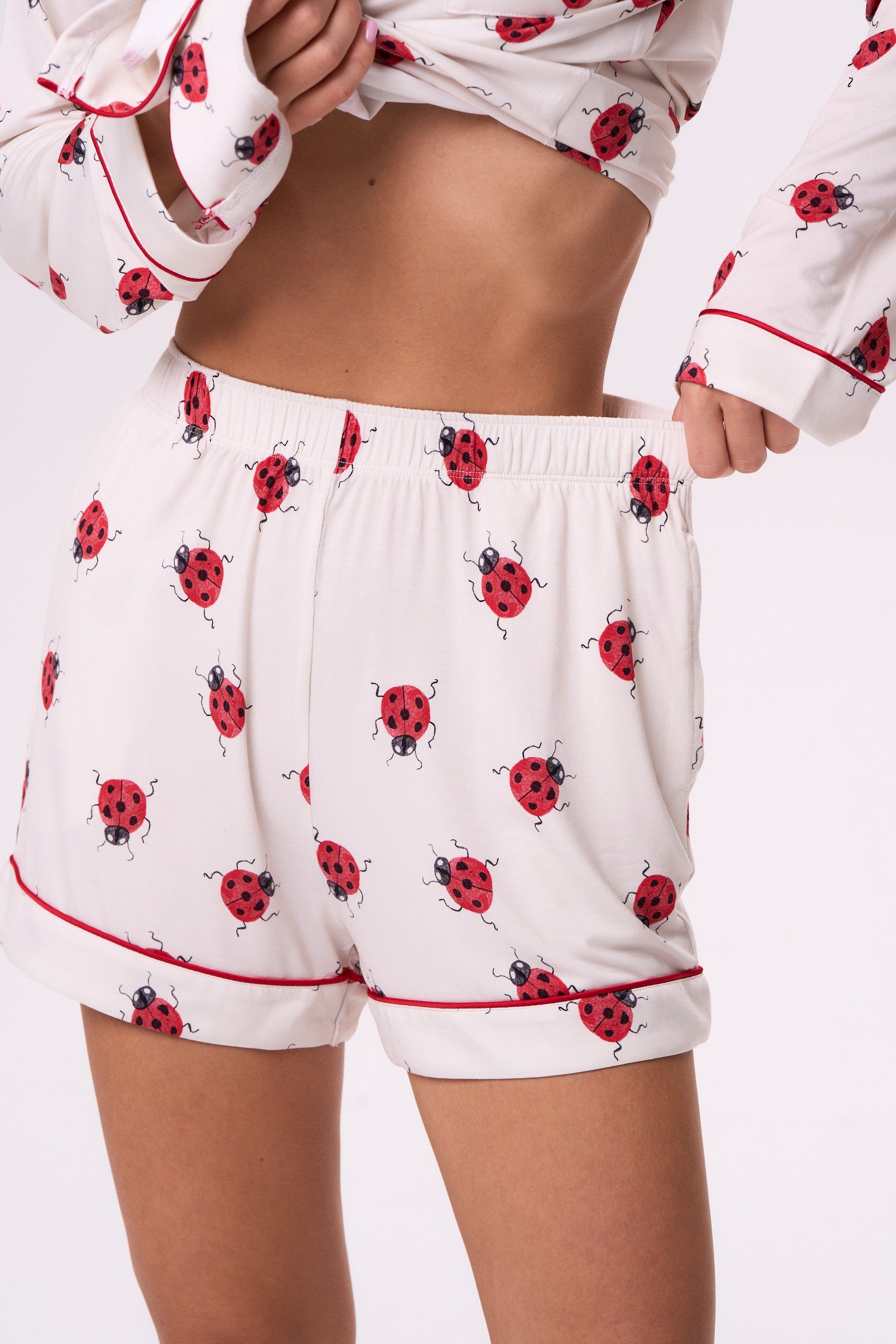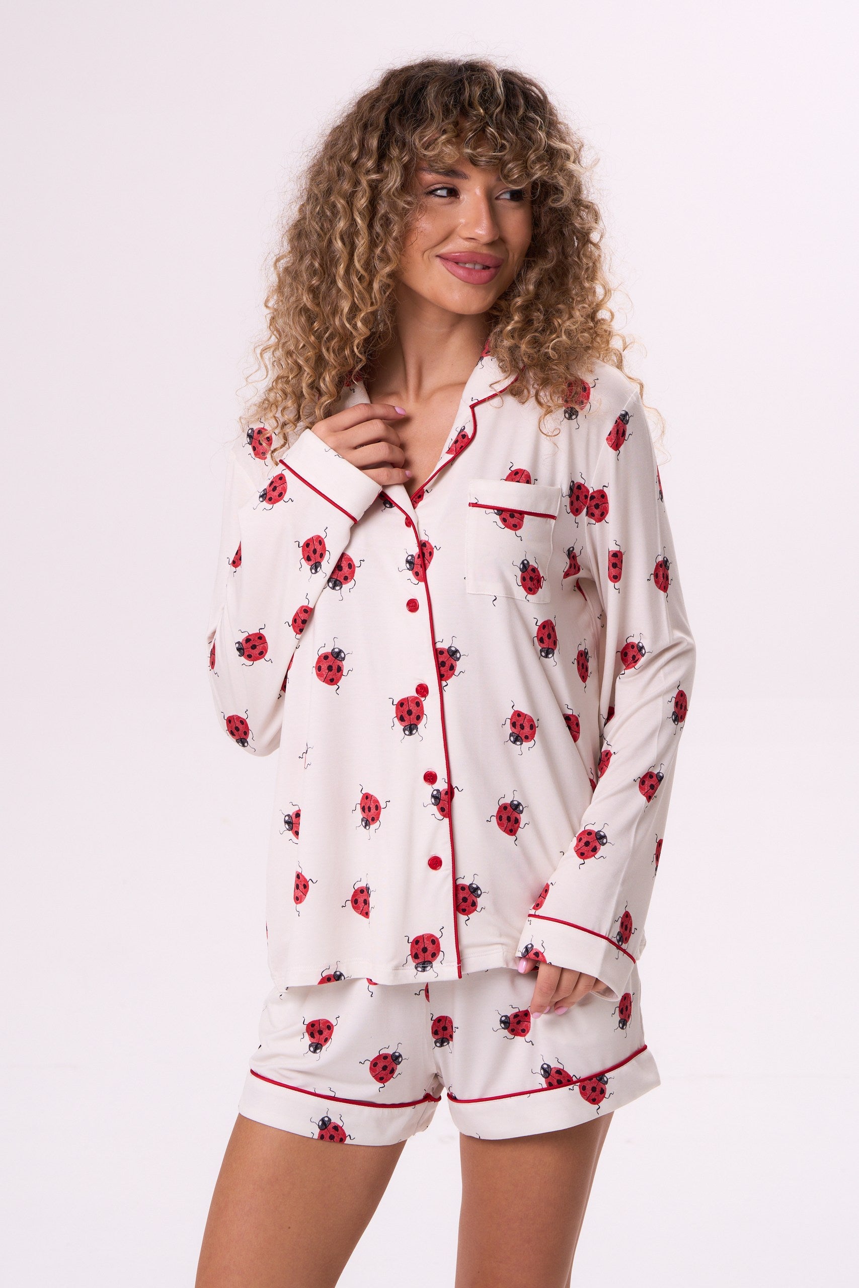 A long-sleeve and shorts set made from premium bamboo viscose, Luck on You is soft, breathable, and easy on the skin. The light ladybug print adds a hint of whimsy without feeling loud — a small detail that brings personality to your lounge style.